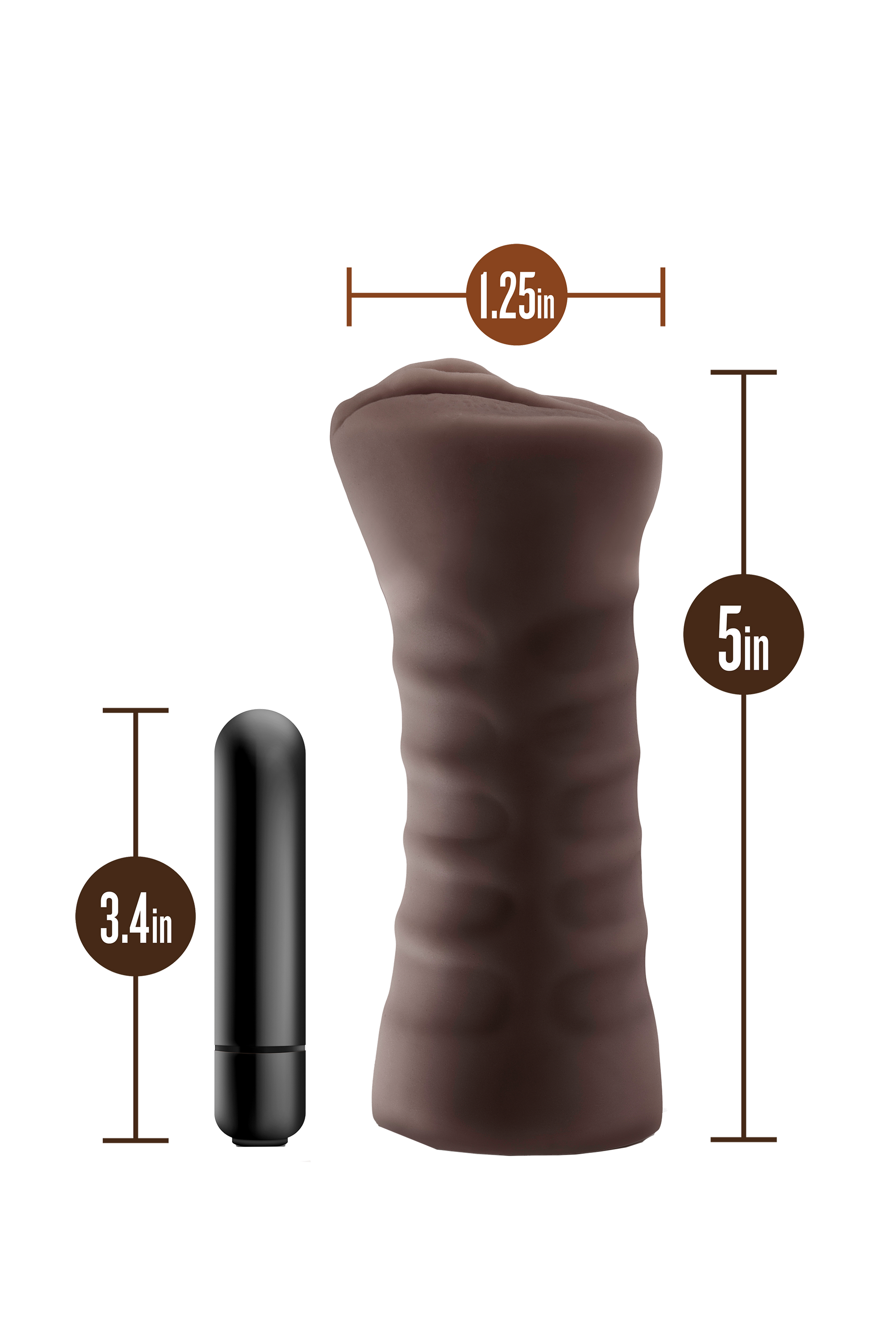 The Hot Chocolate Brianna is soft, supple, and ready to take you, anytime. This realistic stroker is tight but yielding, and filled with sensational textures. It comes with a multi-speed vibrating bullet, to enhance sensation as you stroke. Open-ended and easy to clean, Brianna will accommodate any size penis.
