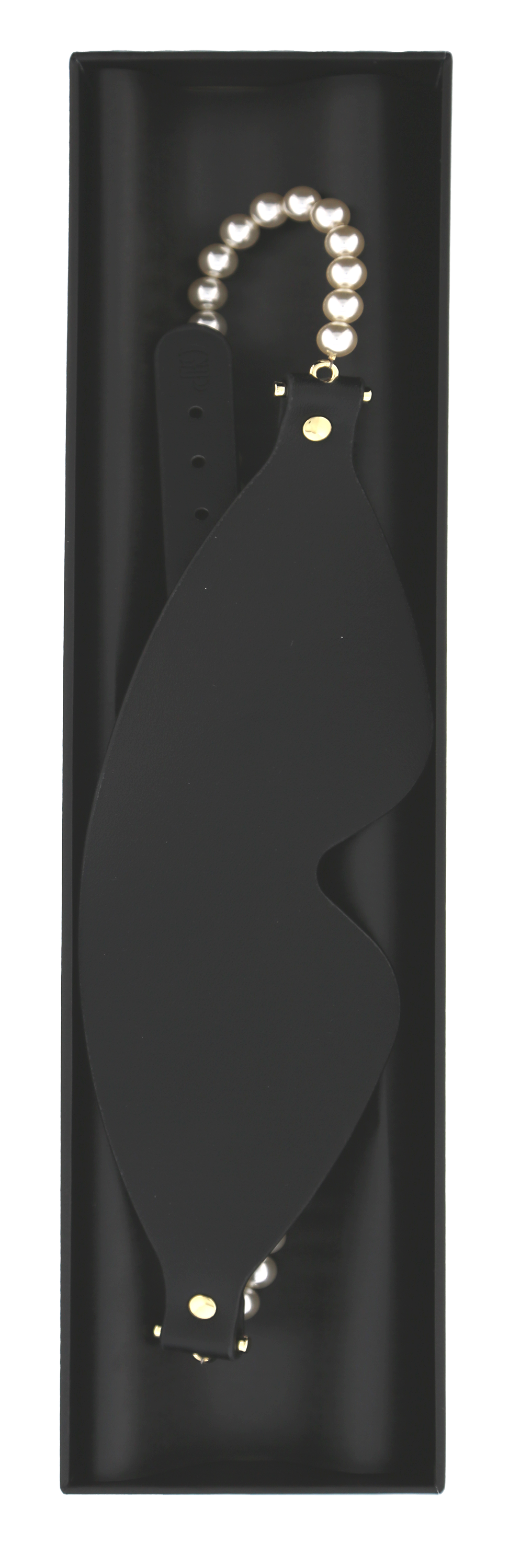 The Boudoir Pearl Blindfold combines sensory pleasure with sophisticated style. Its matte panel creates complete darkness to heighten touch and anticipation, while an elegant strand of faux pearls adds a seductive touch. The adjustable vegan leather strap with gold hardware ensures a secure, comfortable fit for all experience levels. Perfect for exploring new sensations or deepening intimate connection.