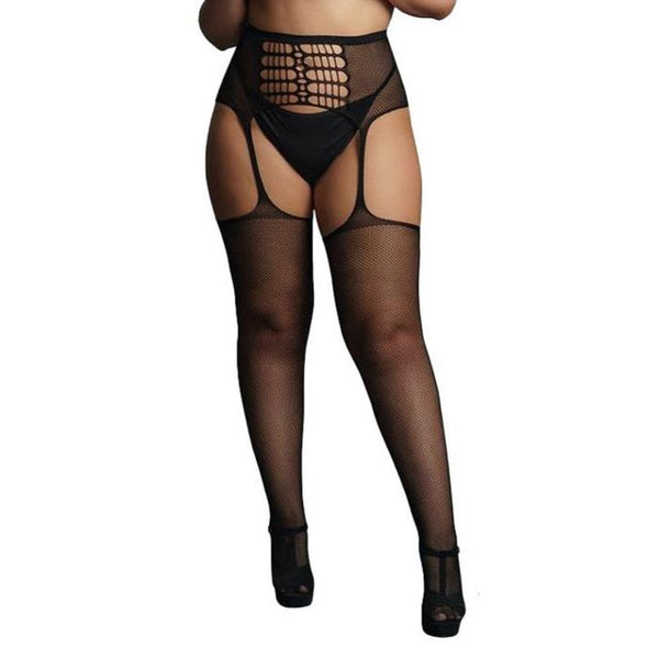 Le Désir Striped Fishnet Garterbelt Plus Size