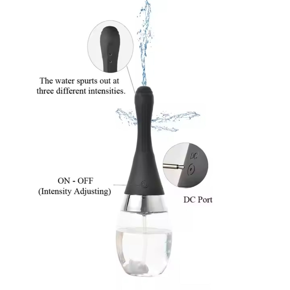 A hygienic, electric anal douche designed for thorough cleansing with a comfortable medical-grade silicone nozzle. The integrated 300 ml (10.15 oz) reservoir and 3-speed water spray deliver adjustable flow at the touch of a button. Waterproof construction and a rechargeable battery make it convenient for routine wellness and pre-play preparation.