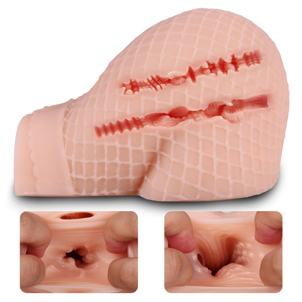 A compact, life-like TPE mini torso designed for men, featuring a sculpted silhouette and a unique molded fishnet stockings effect directly on the surface—no hosiery required. The soft, elastic TPE delivers a realistic touch, while the waterproof build makes cleaning straightforward.