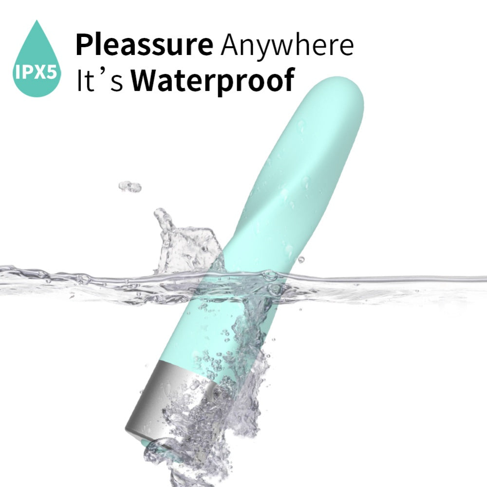 A sleek bullet vibrator (a.k.a. vibrating egg) with a soft-touch cyan finish and a subtle spiral texture for extra grip and sensation. Its 16 vibration modes, compact size, and waterproof, USB-magnetic rechargeable build make it a high-conversion essential for first-time shoppers and travel buyers alike.