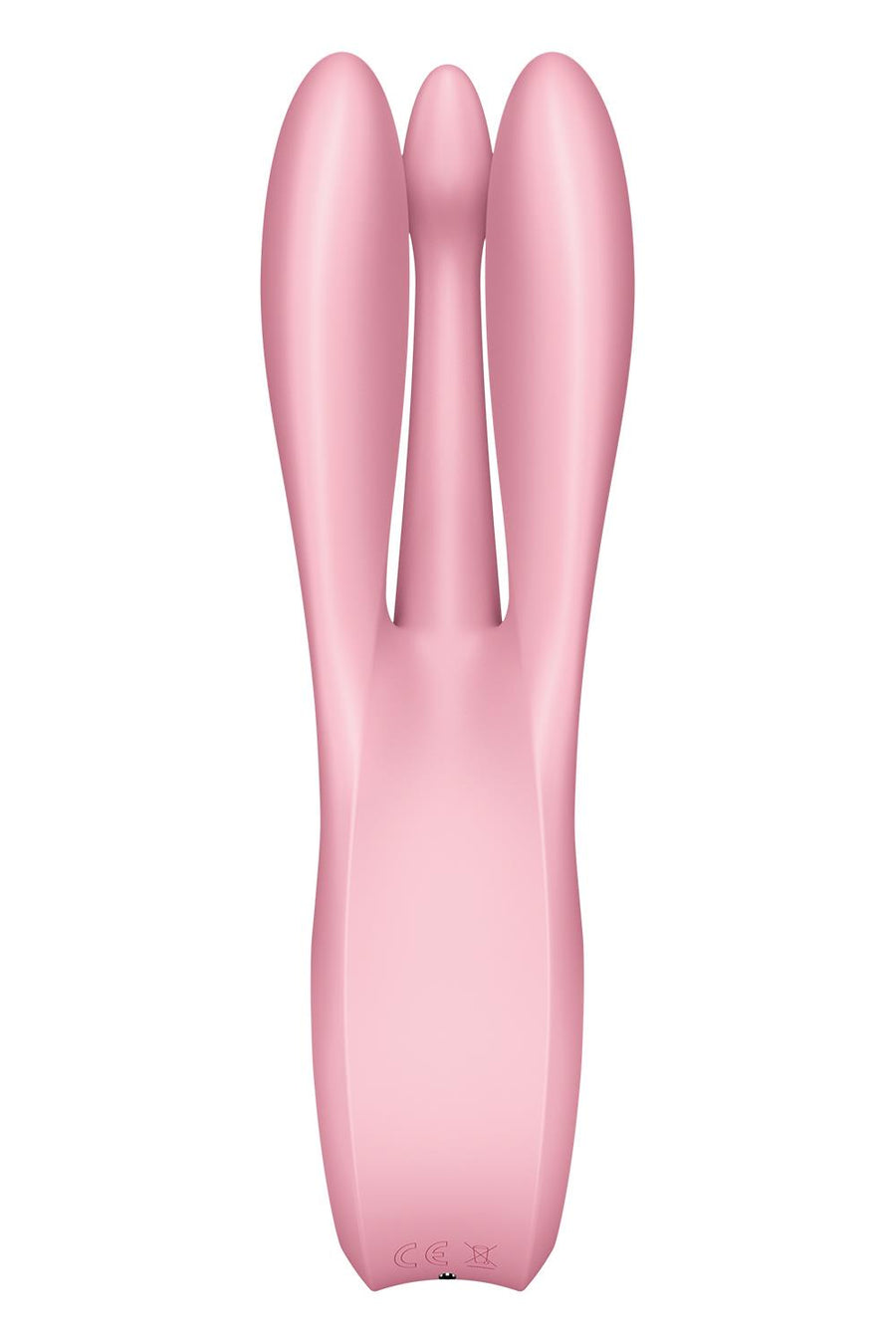 The Satisfyer Threesome 1 features three flexible arms with independent motors for customizable stimulation across multiple zones. Choose from 12 vibration programs via intuitive controls—adjust outer arms and middle arm separately for broad or targeted pleasure. Crafted from body-safe silicone with ABS accents, it's rechargeable and waterproof (IPX7). Discover versatile satisfaction designed for you.